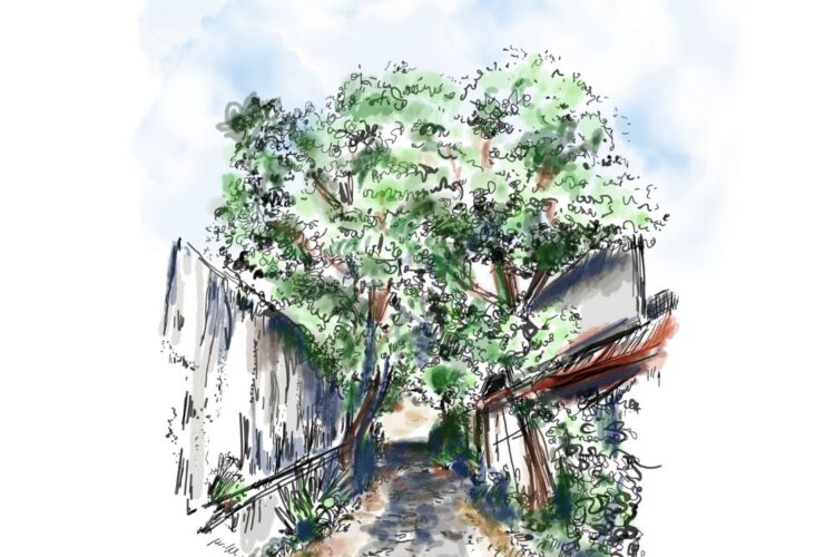 Capturing the serene charm of an alley outside a villa in Uluwatu, here’s sketch completed over a relaxing weekend with the cousins.