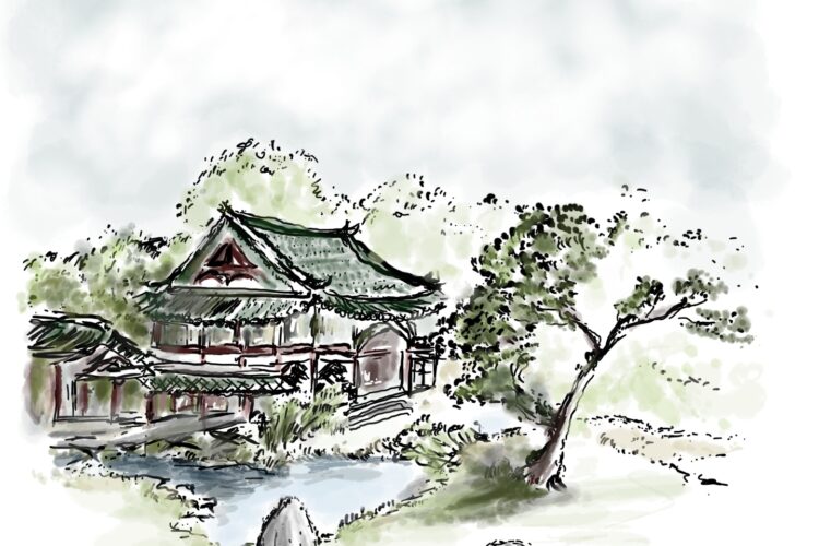 We were on a tight schedule that day, and reached the garden just moments before the skies darkened dramatically – the rustling of the leaves quickly transformed into the sound of raindrops hitting the temple roof.